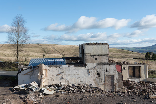 Another sunny Sunday saw me heading, late again, for the AONB to try and find a photographic direction to approach it from. I'd chosen to take an indirect route and in so doing I would pass the Moorcock which I'd photographed the remains of recently. I was shocked to see there was next to nothing left of the old pub. Yet another reminder to photograph things before it's too late. After my previous visit I did some Googling and found that the Urbex crowd had been inside it. So it's final years have been recorded.